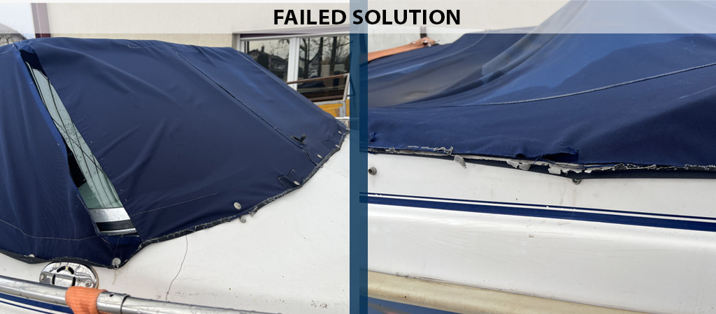 Serijska pokrivala so pogosto kompromis. Niso prilagojena specifični geometriji vašega plovila, kar vodi v nabiranje vode (žepe), plapolanje v vetru in drgnjenje ob trup.
