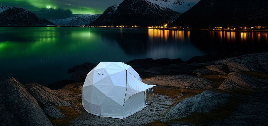 Tradicionalna oblika, prilagojena sodobni rabi. Primerne za bivanje, delovne prostore ali turistične namene, z možnostjo ogrevanja in dodatne zaščite. - Dome šotori: