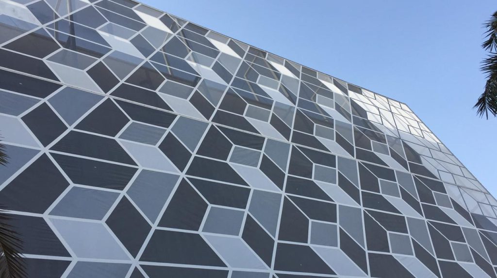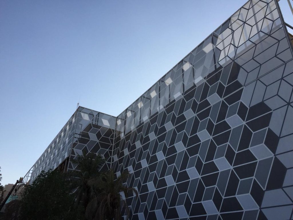 Barvita potiskana mreža služi tudi kot fasada